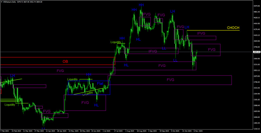 Торговые рекомендации по Эфиру(Ethereum) на 7 ноября по системе ICT.