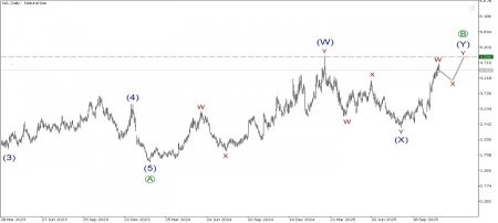 Предполагается, что долгосрочной перспективе по Газу может формироваться глобальная коррекционная волна [B] внутри крупного медвежьего зигзага. Коррекционная волна [B], судя по внутренней структуре, может принять форму двойного зигзага (W)-(X)-(Y). На сегодняшний день смотрится завершенной действующая волна (W), она приняла форму двойного зигзага W-X-Y. Также может быть сформирована волна-связка (X), она имеет форму двойного зигзага W-X-Y. На последнем участке графика мы можем наблюдать построение заключительной действующей волны (Y), она также может приобрести форму двойного зигзага W-X-Y. Есть большая вероятность, что финальный двойной зигзаг будет завершен в области предыдущего максимума 4.89, который был отмечен действующей подволной (W). Таким образом, в текущей ситуации можно рассматривать открытие длинных позиций, с целью забрать прибыль на максимуме 4.89. После достижения указанной отметке возможна смена тренда, а именно начало медвежьего импульса [C].Торговые рекомендации: Buy 4.46, takeprofit 4.89.Материал предоставлен компанией InstaForex - www.instaforex.com