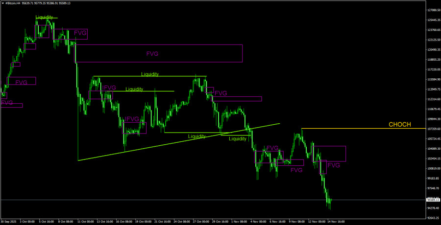 Торговые рекомендации по Биткоину(Bitcoin) на 15 ноября по системе ICT.