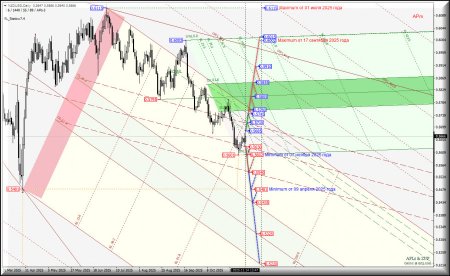 - уровень поддержки 0.6495 на 1/2 Median Line вил старшего операционного масштаба Minor-Daily.Нисходящее движение.В случае пробоя 1/2 Median Line Minor-Daily - уровень поддержки 0.5630 - с последующим пробоем minimum 0.5602 от 07 ноября 2025 года нисходящее движение NZD/USD может иметь продолжение к нижней границе канала 1/2 Median Line Minor-Daily (0.5540) с последующим вариантом достижения этим валютным инструментом minimum 0.5481 от 09 апреля 2025 года b верхней границы ISL38.2 (0.5435) нисходящих вил старшего операционного масштаба Minor-Daily.Восходящее движение.При пробое уровня сопротивления 0.5685 движение New Zealand Dollar vs US Dollar получит развитие в канале 1/2 Median Line Minute-h4 (0.5685 - 0.5715 - 0.5745) с перспективой достижения границ зоны равновесия (0.5760 - 0.5805 - 0.5855) вил младшего операционного масштаба Minute-h4 и предупредительной линии UWL38.2 (0.5910) вил старшего операционного масштаба Minor-Daily.____________________Обзор составлен без учета новостного фона, открытия торговых сессий основных финансовых центров и не является руководством к действию (выставления ордеров "sell" или "buy").Больше аналитики на сайте InstaForex.ZUP и Вилы Эндрюса (термины, понятия, параметры).