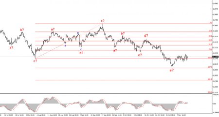 Исходя из проведенного анализа EUR/USD, я делаю вывод, что инструмент продолжает построение повышательного участка тренда. В последние несколько месяцев рынок взял паузу, но политика Дональда Трампа и ФРС остаются весомыми факторами падения американской валюты в будущем. Цели текущего участка тренда могут простираться вплоть до 25-й фигуры. В данное время продолжается построение коррекционной волны 4, которая принимает очень сложный и протяженный вид. Последняя ее внутренняя структура – a-b-c-d-e предположительно завершена. Если это действительно так, то я ожидаю повышения инструмента с целями, расположенными около годовых максимумов или около них.Волновая картина по GBP/USD: