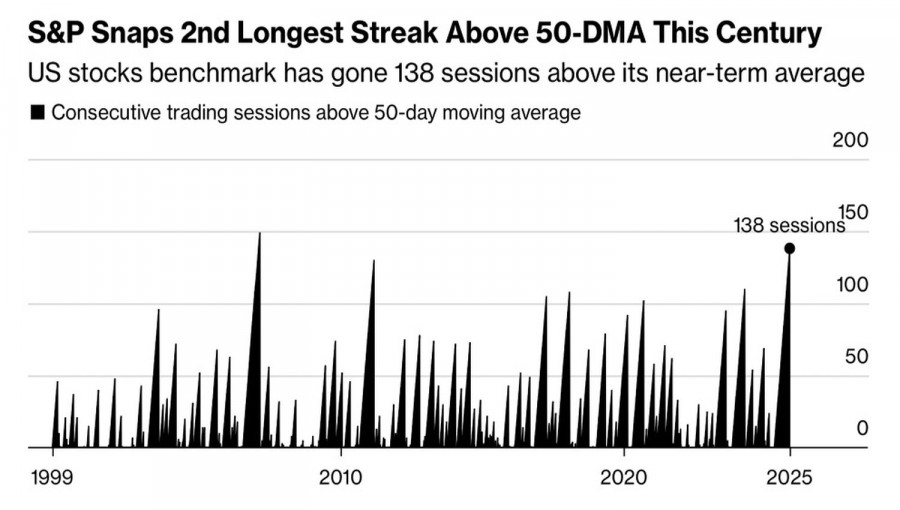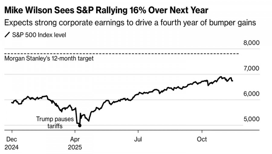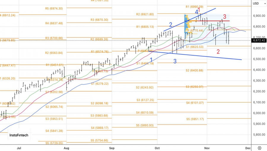 Первое с мая падение S&P 500 ниже 50-дневной скользящей средней стало важным сигналом о возможном продолжении отката. Широкий фондовый индекс находился над ключевой динамической поддержкой на протяжении 138 торговых сессий. Речь идет о самой продолжительной серии с 2007, второй в текущем веке. Символично, что первая случилась накануне мирового экономического кризиса 2008-2009. Динамика серий S&P 500 выше 50-дневной скользящей среднейЕсть мнение, что спады в экономике США происходят из-за чрезмерного ужесточения денежно-кредитной политики и нежелания ФРС снижать высокие ставки на фоне высокой инфляции. Именно эти процессы имеют место в настоящее время. Все больше чиновников FOMC проявляют беспокойство по поводу чрезмерно высоких цен. Однако Кристофер Уоллер считает, что Центробанк должен действовать на опережение – продолжать цикл монетарной экспансии, чтобы помочь охлаждающемуся рынку труда. Если вместо мягкой посадки американская экономика окунется в рецессию, появится веский аргумент в пользу продаж S&P 500. Кто тогда вспомнит о самом сильном сезоне корпоративной отчетности с 2021? Около 90% компаний широкого фондового индекса предоставили свои финансовые результаты за третий квартал. 4 из 5 из них превзошли прогнозы по прибыли при среднем значении за последнее десятилетие в 75%. Более трех четвертей эмитентов переплюнули оценки Уолл-стрит по выручке, что также выше средних двух третьих. 19 ноября свой отчет предоставит NVIDIA. Срочный рынок ожидает реакции ее акций в +/- 6,5%. Если так и будет, это серьезно раскачает фондовые индексы. Тем более в тот же день увидит протокол октябрьского заседания FOMC, а на следующий – долгожданный отчет о рынке труда США за сентябрь. Динамика S&P 500 и прогноз Morgan StanleyНесмотря на сигналы о возможном переходе рынка на территорию «медведей», оптимисты не перевелись. Morgan Stanley выставляет один из самых «бычьих» прогнозов на Уолл-стрит о росте S&P 500 до 7800 к концу 2026. Он предполагает, что широкий фондовый индекс отметится четвертым подряд годовым двухзначным приростом. В основе позитивной оценки лежат ожидания увеличения корпоративных прибылей на акцию на 17% в 2026 и на 12% в 2027. Технически на дневном графике S&P 500 отбой от динамического сопротивления в виде скользящих средних стал свидетельством силы «медведей». Сформированные ранее короткие позиции, в том числе от пивот-уровня 6805, имеет смысл удерживать и периодически наращивать. В качестве целевых ориентиров выступают отметки 6560 и 6400. Материал предоставлен компанией InstaForex - www.instaforex.com