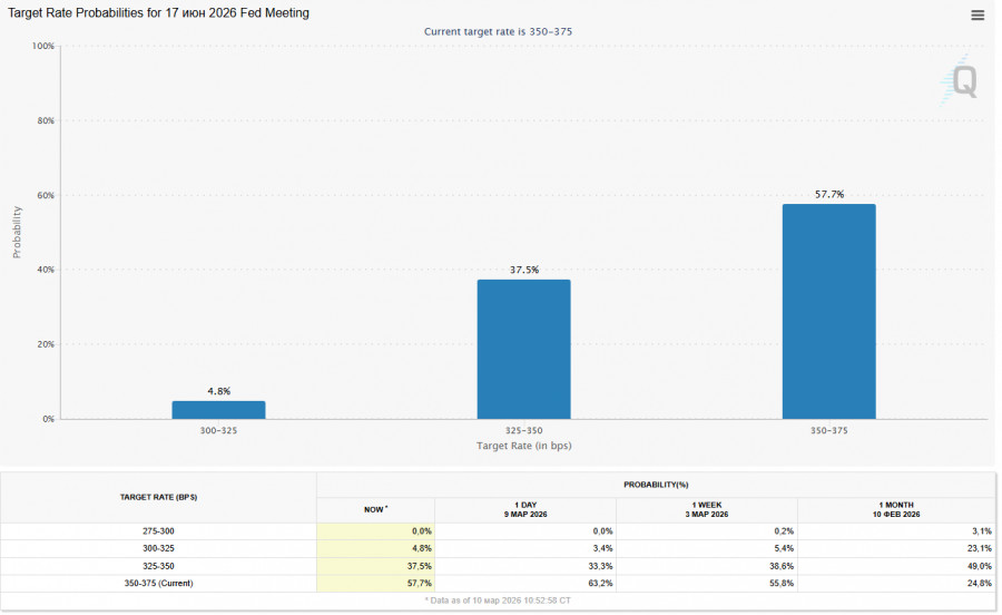 Еврозона столкнулась с серьёзными трудностями в своей экономике. Так, январские данные по внешней торговле Германии показывают сокращение объемов импорта на 5,9% и экспорта на 2,3%. Руководители центральных банков некоторых европейских государств подчёркивают потенциальное негативное влияние роста цен на энергоносители на общую экономическую обстановку в Евросоюзе. Евро временно усилился по отношению к доллару, демонстрируя устойчивость к негативным факторам. Однако в целом динамика остаётся весьма непредсказуемой, и инвесторы проявляют осторожность при принятии инвестиционных решений. Между тем, эскалация конфликта на Ближнем Востоке остается основным фактором, определяющим динамику EUR/USD в настоящий момент. Война США и Израиля против Ирана, вошедшая во вторую неделю, создала беспрецедентную неопределенность на энергетических рынках. Корпус стражей исламской революции (КСИР) заявил, что именно Тегеран определит конец войны, и предупредил о возможности полной блокады нефтяного экспорта региона. Поскольку Европа является крупным нетто-импортером энергии, рост цен на сырую нефть оказывает на евро двойное негативное давление. С одной стороны, высокие цены на энергоносители подрывают экономический рост региона, с другой - разгоняют инфляцию, создавая классические стагфляционные риски. Однако рынок получил сигналы возможной деэскалации: президент США Дональд Трамп заявил в понедельник, что война «почти завершена, довольно полная» и идет с опережением графика. Эти комментарии, наряду с сообщениями о возможном отказе от части нефтяных санкций и планах ВМС США сопровождать танкеры через Ормузский пролив, вызвали резкую коррекцию доллара от многомесячных максимумов. Индекс доллара USDX в понедельник достиг 99.65 - максимального уровня с ноября 2025 года, но затем откатился к 98.75 (к 98.60-98.50 на текущий момент) после заявлений Трампа. Доллар продолжает получать поддержку как главная «тихая гавань» в периоды неопределенности, но рынок, по-видимому, уже во многом заложил в цены текущий уровень напряженности. Пересмотр ожиданий по ставкам ЕЦБ и ФРС Парадоксальным образом энергетический шок привел к переоценке ожиданий по монетарной политике Европейского центрального банка. Рынки теперь закладывают в цены возможность двух повышений ставок на 25 базисных пунктов в 2026 году, тогда как ранее ожидалось сохранение ставок без изменений до 2026 года. Это связано с необходимостью борьбы с энергетической инфляцией. Экономисты отмечают, что реакция европейских и британских ставок на энергетический шок оказалась более сильной, чем в США. Это может привести к сужению дифференциала двухлетних свопов EUR:USD, что потенциально способно обеспечить более устойчивую поддержку паре в зоне 1.1540 (ЕМА50 на недельном графике и ЕМА200 на месячном графике) -1.1600. В США инфляционные ожидания также выросли, но в меньшей степени - доходность 10-летних казначейских облигаций поднялась - до 4,115%, на текущий момент. Рынки видят 37% вероятности первого снижения ставки в июне и 42% в июле. ФРС же сталкивается с дилеммой: рост цен на энергоносители усиливает инфляционное давление, но одновременно угрожает экономическому росту, что может парализовать монетарную политику. Факторы ближайших дней