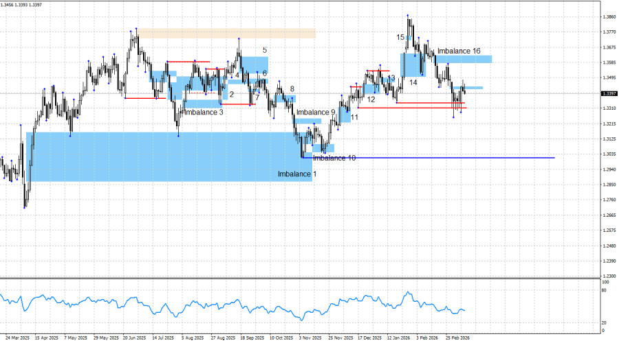 Сегодня вышел последний из важных американских отчетов в этом месяце. Безусловно, всю экономическую статистику не стоит сводить только к Nonfarm Payrolls, уровню безработицы и уровню инфляции. Но эти три показателя в последние годы имеют ключевое значение для ДКП ФРС. Инфляция в Америке не изменилась в феврале, поэтому поддержки или сопротивления доллару этот отчет не оказал. Внимание рынка вновь смещается в сторону нефти и геополитики. В данное время «бычьих» паттернов нет, а цена вряд ли в ближайшее время выполнит возврат к имбалансу 16 и со второй попытки даст трейдерам нужный сигнал. На мой взгляд, если в ближайшие несколько дней новой эскалации на Ближнем Востоке не произойдет, спрос на доллар продолжит падение. В последние семь дней медведи атаковали гораздо слабее, чем раньше, хотя война в Иране не прекращается, а цены на энергоносители остаются высокими. Я также отметил на графике один слабый «медвежий» имбаланс, на который теоретически может последовать реакция рынка. И в данное время этот имбаланс совпадает с имбалансом по EUR/USD. «Бычий» тренд по британцу сохраняется. Таким образом, до тех пор, пока он сохраняется (выше уровня 1,3012), я бы больше внимания уделял «бычьим» сигналам. Падение британца может быть достаточно сильным, но теперь медведям нужны новые поводы для новых атак. Одним фактом войны отделаться доллару уже не получится. Рынок проигнорировал американскую статистику на прошлой неделе и не желает продавать доллар в пользу других валют. Однако так будет не всегда. Информационный фон в среду был слабым, несмотря на отчет по американской инфляции. Сам отчет не показал интересного значения, ожидания трейдеров совпали с реальностью. Других важных экономических данных в течение дня не поступало. В США общий информационный фон остается таковым, что ничего, кроме падения американца, в долгосрочном плане ожидать нельзя. И война между Ираном и США пока мало что меняет. Ситуация для американского доллара остается достаточно сложной в долгосрочном плане и позитивной в краткосрочном. Но в том то и дело, что позитивна она только в краткосрочной перспективе. Статистика по рынку труда США продолжает разочаровывать чаще, чем радовать. Последние три заседания FOMC из четырех завершились принятием «голубиного» решения. Военная агрессия Трампа, угрозы в адрес Дании, Мексики, Кубы, Колумбии, стран ЕС, Канады и Южной Кореи, возбуждение уголовного дела против Джерома Пауэлла, «шатдауны», скандал с элитой США по делу Эпштейна, возможный импичмент Трампа к концу года и весьма вероятно проигранные выборы республиканцами прекрасно дополняют текущую картину политического и структурного кризиса в Америке. На мой взгляд, у быков есть все, чтобы возобновить наступление в течение 2026 года. Для «медвежьего» тренда нужен сильный и стабильный для американца позитивный информационный фон, которого при Дональде Трампе сложно ожидать. Поэтому в «медвежий» тренд по британцу я по-прежнему не верю. Слишком много факторов риска остается висеть мертвым грузом на долларе. От «медвежьих» паттернов можно рассмотреть открытие сделок на продажу, но лично я сомневаюсь в правильности такого решения. Считаю последнее падение пары в некоторой степени случайным стечением обстоятельств. Календарь новостей для США и Великобритании: США – Число полученных раз