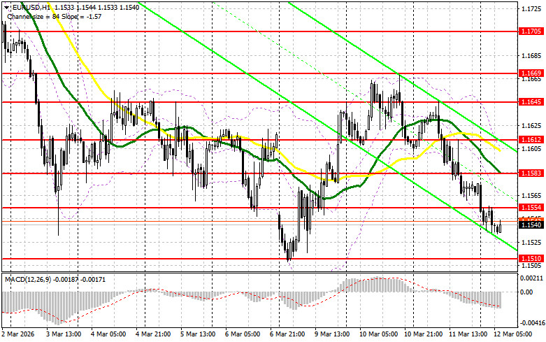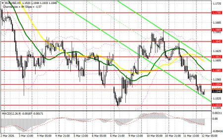 Вчера было образовано несколько точек входа в рынок. Давайте посмотрим на 5-минутный график и разберемся с тем, что там произошло. В своем утреннем прогнозе я обращал внимание на уровень 1.1639 и планировал от него принимать решения по входу в рынок. Рост и формирование ложного пробоя в районе 1.1639 привели к хорошей точке входа на продажу евро, что вылилось в падение пары более чем на 40 пунктов. Во второй половине дня история повторилась, но уже с уровнем 1.1612, что привело к снижению пары в район поддержки 1.1576.Для открытия длинных позиций по EURUSD требуется:Доллар продолжил рост против евро после того, как общий, так и базовый индексы потребительских цен показали ожидаемые результаты и совпали с прогнозами экономистов: общий показатель вырос на 0,3% по сравнению с предыдущим месяцем, а индекс без учета цен на продукты питания и энергоносители — на 0,2%. Сегодня, кроме данных по уровню безработицы в Италии, по еврозоне нет никакой другой статистики, так что евро может получить шанс на небольшое восстановление в первой половине дня. При слабых показателях давление на пару быстро вернется, чем можно будет воспользоваться. Первого проявления покупателей ожидаю в районе 1.1510. Формирование там ложного пробоя даст точку входа в длинные позиции с целью восстановления пары к уровню 1.1554, образованному по итогам вчерашнего дня. Прорыв и обратный тест этого диапазона станут подтверждением правильных действий на покупку евро уже в расчете на более сильный рывок к сопротивлению 1.1583, где ожидаю активного проявления продавцов. Самой дальней целью выступит максимум 1.1612, где буду фиксировать прибыль. При варианте снижения EUR/USD и отсутствия активности в районе 1.1510, евро возобновит свое активное падение. В таком случае продавцы попытаются дотянуться до следующего интересного уровня 1.1472. Лишь формирование там ложного пробоя будет подходящим условием на покупку евро. Открывать длинные позиции сразу на отскок будут от 1.1433 с целью восходящей коррекции в 30-35 пунктов внутри дня.Для открытия коротких позиций по EURUSD требуется: Продавцы вернули контроль над рынком, так как, по всей видимости, заявления Трампа по Ближнему востоку больше не работают и не успокаивают. В настоящий момент задачей медведей является защита ближайшего сопротивления 1.1554. Только формирование там ложного пробоя даст точку входа в короткие позиции с целью движения к поддержке 1.1510 – месячному минимуму. А вот прорыв и закрепление ниже этого диапазона, а также обратный тест снизу вверх, позволят добиться более крупной распродажи евро. Это приведет к дополнительному варианту на открытие коротких позиций с движением в район 1.1472. Самой дальней целью выступит область 1.1433, где буду фиксировать прибыль. В случае движения вверх EUR/USD, а также отсутствия активных действий медведей в районе 1.1554, евро получит шанс на небольшое восстановление. В таком случае короткие позиции лучше всего отложить до более крупного уровня 1.1583, где проходят средние скользящие, играющие на стороне медведей. Продавать там будут только после неудачного закрепления. Открывать короткие позиции сразу на отскок я планирую от 1.1612 с целью нисходящей коррекции в 30-35 пунктов.Рекомендую для ознакомления:В COT-отчете (Commitment of Traders) за 3 марта наблюдалось сокращение длинных позиций и резкий рост коротких. Учитывая войну США и Израиля 