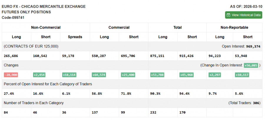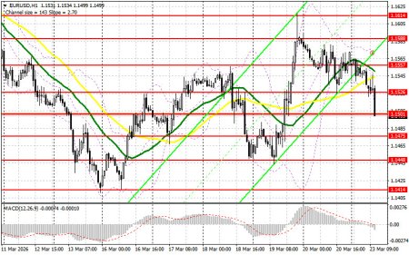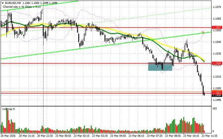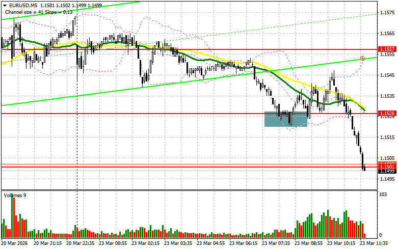В своем утреннем прогнозе я обращал внимание на уровень 1.1526 и планировал от него принимать решения по входу в рынок. Давайте посмотрим на 5-минутный график и разберемся с тем, что там произошло. Снижение и формирование ложного пробоя в районе 1.1526 привели к хорошей точке входа на покупку евро, что вылилось в рост ары на 20 пунктов. На вторую половину дня техническая картина не пересматривалась.Для открытия длинных позиций по EURUSD требуется:Покупатели евро проявили себя в начале европейской сессии, но после небольшой коррекции давление на пару быстро вернулось, что является реакцией на происходящее на Ближнем Востоке. Во второй половине дня ожидаются лишь цифры по изменению объема расходов в строительном секторе в США, которые особо не повлияет на американский доллар. По этой причине все внимание будет сосредоточено на ультиматуме Трампа по Ормузскому проливу, который заканчивается сегодня, и соответствующей реакцией на все это Ирана. Напомню, что Трамп обратился к Ирану с требованием открыть пролив, иначе он уничтожит всю электросистему страны. В случае увеличения напряженности евро продолжит медвежий импульс. При снижении пары рассчитывать будут на поддержку 1.1501. Формирование там ложного пробоя даст точку входа в длинные позиции в расчете на восстановление евро к уровню 1.1526. Прорыв и обратный тест этого диапазона сверху вниз станут подтверждением правильной точки вход с движением к области 1.1557. Самой дальней целью будет уровень 1.1588, где буду фиксировать прибыль. При варианте снижения EUR/USD и отсутствия активности в районе 1.1501, давление на евро увеличится. Это приведет к снижению в район минимума 1.1475. Лишь после формирования там ложного пробоя собираюсь действовать на покупку евро. Открывать длинные позиции сразу на отскок планирую от 1.1448 с целью восходящей коррекции в 30-35 пунктов внутри дня.Для открытия коротких позиций по EURUSD требуется: Продавцы проявили себя, добившись очередной распродажи евро, что полностью перечеркнуло рост пары, наблюдаемый на прошлой неделе. При коррекции EUR/USD на фоне отсутствия данных по США, акцент будет смещен на защиту сопротивления 1.1526. Формирование там ложного пробоя по аналогии с тем, что я разбирал выше, станет точкой входа в короткие позиции с целью снижения к уровню 1.1501. Прорыв и закрепление ниже этого диапазона станут подходящим вариантом на продажу уже с движением в район 1.1475. Там ожидаю более активного проявления покупателей. Самой дальней целью выступит минимум 1.1448, где буду фиксировать прибыль. В случае движения вверх EUR/USD, а также отсутствия активных действий медведей в районе 1.1526, быки получат шанс на более крупный рост. Все это откроет дорогу к уровню 1.1557, где проходят средние скользящие, играющие на стороне медведей. Продавать там буду только после неудачного закрепления. Открывать короткие позиции сразу на отскок я планирую от 1.1588 с целью нисходящей коррекции в 30-35 пунктов.Рекомендую ознакомиться:В COT-отчете (Commitment of Traders) за 10 марта наблюдалось сокращение длинных позиций и рост коротких. Учитывая продолжающуюся войну США и Израиля с Ираном, нет ничего удивительно, что в этом отчете вновь зафиксирован резкий рост коротких позиций по евро. Ситуация на Ближнем Востоке пока не приходит в норму, так что рассчитывать на кардинальные изменения в расстановке сил пока не приходится. В 