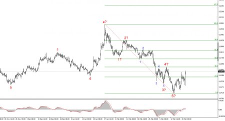 Волновая картина инструмента GBP/USD приобрела очень сложный, нечитаемый вид. Теперь мы видим на графиках семиволновую понижательную структуру, которая, безусловно, таковой не является. Вероятнее всего, внутри одной из волн присутствует удлинение или усложнение. Однако понятнее от этого волновая разметка не становится. Если волновая картина один раз усложнилась до нечитаемого вида, то может усложниться и еще несколько раз. Поэтому я считаю, что сейчас нужно опираться на волновую разметку инструмента EUR/USD, которая выглядит гораздо более понятно. Поэтому от британца я также жду повышения с целями, расположенными около отметок 1,3541 и 1,3620. Также не следует забывать о факторе геополитики, который в любой момент может отправить оба инструмента в новое падение.Основные принципы моего анализа:
