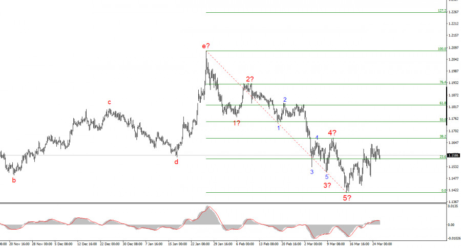 Анализ EUR/USD. 25 марта. Трамп хочет мираВолновая картина по EUR/USD: