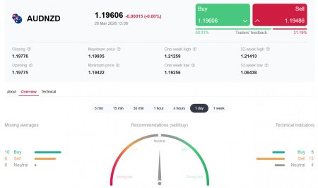 * см. также: Торговые индикаторы InstaForex по AUD/NZD[/i] Несмотря на двухнедельное снижение, пара AUD/NZD завершает март 2026 года уверенным ростом, консолидируясь в районе 1.1940-1.1950 в начале американской торговой сессии четверга после достижения на прошлой неделе 13-летнего максимума 1.2140. Австралийский доллар продолжает доминировать над новозеландским на фоне кардинального расхождения в монетарной политике двух центробанков, усиленного геополитической турбулентностью и энергетическим кризисом. Ключевой фактор: дивергенция монетарной политики Как сообщили в среду в