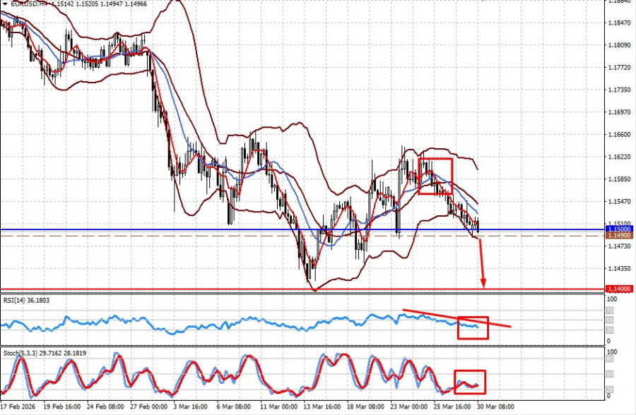 Пара евродоллар остается под прессингом на фоне увеличения спроса на государственные облигации США на фоне ближневосточного кризиса, где уже в ближайшие дни может произойти эскалация в виде наземной операции США против Ирана. Как все это будет выглядеть, покажет время, но ясно одно, что рост цен на нефть будет поддерживать спрос на доллар, как и ожидание сохранения денежной политики ФРС в ближайшем обозримом будущем с риском повышения ставок к концу текущего года. На этом фоне стоит ожидать продолжения плавного укрепления доллара на рынке Форекс. С технической точки зрения пара упала ниже уровня 1.1500, что может привести ее к локальному снижению до конца текущей недели. Техническая картина и торговая идея: