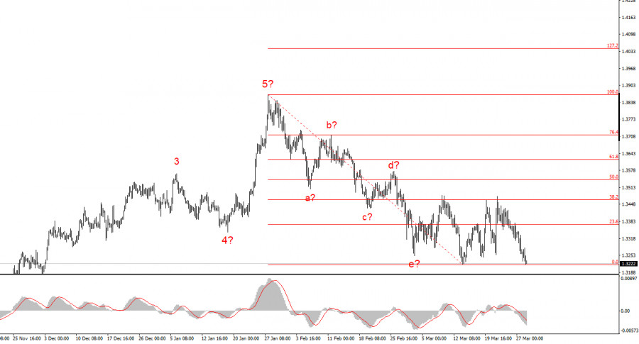 Волновая картина инструмента GBP/USD приобрела очень сложный, нечитаемый вид. Теперь мы видим на графиках семиволновую понижательную структуру, которая, безусловно, таковой не является. Вероятнее всего, внутри одной из волн присутствует удлинение или усложнение. Однако понятнее от этого волновая разметка не становится. Если волновая картина один раз усложнилась до нечитаемого вида, то может усложниться и еще несколько раз. Поэтому я считаю, что сейчас нужно опираться на волновую разметку инструмента EUR/USD, которая выглядит гораздо более понятно. Также не следует забывать о факторе геополитики, который в любой момент может отправить оба инструмента в новое падение. Если этого не произойдет, евро и фунт могут рассчитывать на повышение в рамках коррекции.Основные принципы моего анализа: