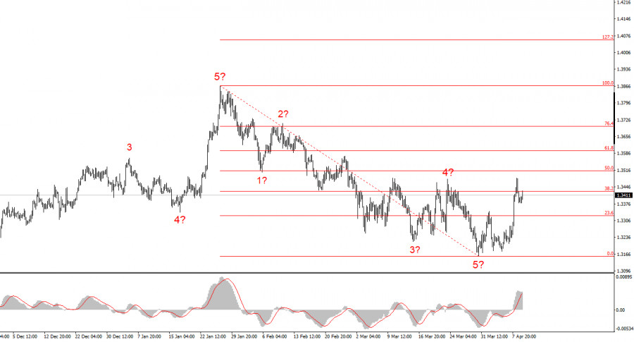 Анализ EUR/USD. 9 апреля. Экономика благодарит Трампа Перемирие находится под угрозой срыва, но еще не сорвано Инфляция и политика ФРСВолновая картина по EUR/USD: