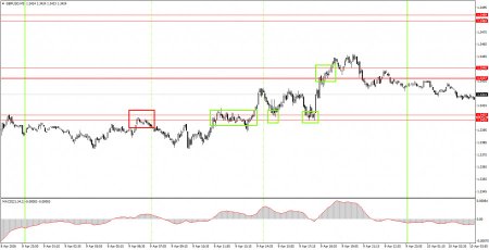 1) Сила сигнала считается по времени, которое потребовалось на формирование сигнала(отскок или преодоление уровня). Чем меньше времени потребовалось, тем сильнее сигнал. 2) Если около какого-либо уровня были открыты две или больше сделки по ложным сигналам, то все последующие сигналы от этого уровня следует игнорировать. 3) Во флэте любая пара может формировать массу ложных сигналов или же не формировать их вовсе. Технические уровни могут игнорироваться. 4) На часовом ТФ по сигналам от индикатора MACD желательно торговать только при наличие хорошей волатильности и тренда, который подтверждается линией тренда или трендовым каналом. 5) Если два уровня расположены слишком близко друг к другу(от 5 до 20 пунктов), то следует рассматривать их, как область поддержки или сопротивления. 6) При прохождении 15 пунктов в верном направлении следует выставить Stop Loss в безубыток.Что на графиках: