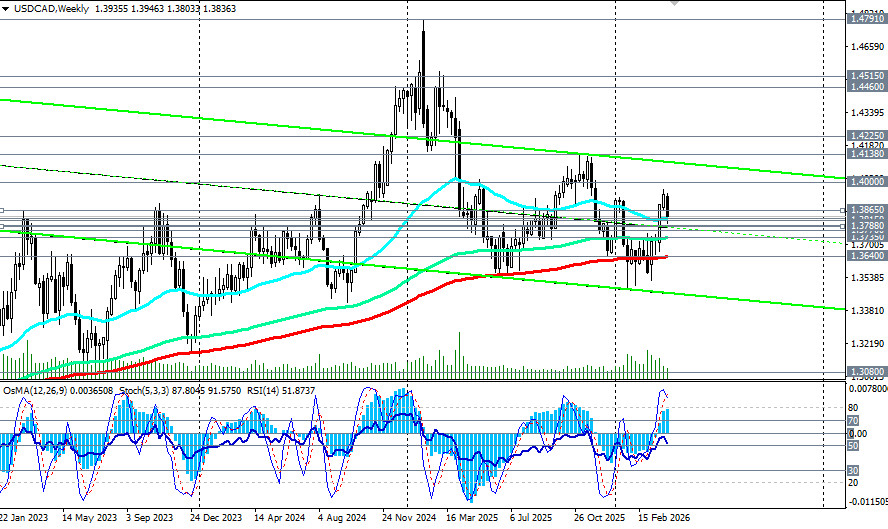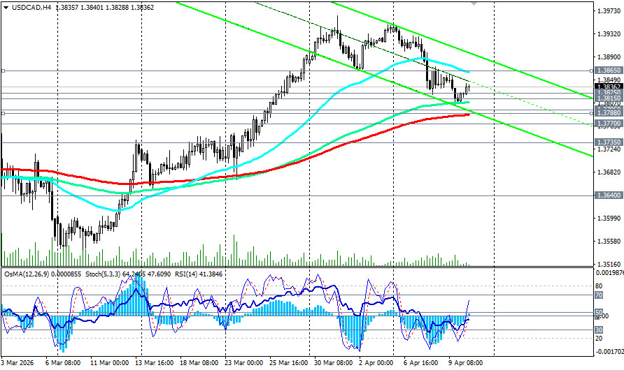 USD/CAD оказалась в эпицентре пересечения трёх мощных сил: хрупкого перемирия на Ближнем Востоке, первого отражения энергетического шока в данных по инфляции США и восстанавливающегося, но неустойчивого рынка труда Канады, отметили мы в нашем сегодняшнем фундаментальном анализе и обзоре «USD/CAD: столкновение данных и хрупкое перемирие». С технической же точки зрения, также вырисовывается несколько противоречивая картина динамики цены, имеющей, на текущий момент, все же бычий долгосрочный уклон – выше 1.3640 (ЕМА200 на недельном графике, ЕМА50 на месячном графике) - и краткосрочный медвежий – ниже 1.3865 (ЕМА200, ЕМА144 на 1-часовом графике). При этом, с января 2015 года пара двигается в зоне глобального бычьего рынка, а с конца августа 2022 года – в зоне долгосрочного бычьего рынка, что сохраняет преимущество за долгосрочными длинными позициями. В более же краткосрочном периоде ключевая зона 1.3815 (ЕМА200 на дневном графике)–1.3865 станет ареной решающей битвы в ближайшие дни. Удержание выше 1.3815 сохранит шансы быков на тест 1.3865 и выше. Данный (бычий) сценарий реализуется при: