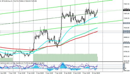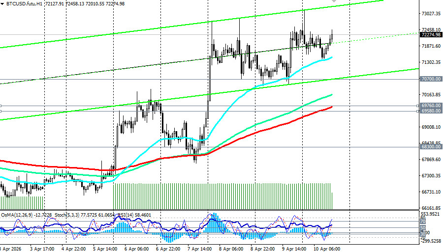 Наиболее вероятный сценарий на текущий момент - движение в диапазоне 68000.00–74000.00. Переговоры продолжаются, но без немедленных результатов. Рынок остаётся чувствительным к геополитическим заголовкам. Цели: консолидация в рамках указанного диапазона с повышенной волатильностью. Уровни поддержки: 71400.00, 71000.00, 70700.00, 70000.00, 69760.00, 69580.00, 69000.00, 68300.00, 68000.00, 66000.00, 65500.00, 65000.00, 60000.00 Уровни сопротивления: 73000.00, 73140.00, 75000.00, 76000.00, 76200.00, 77000.00, 79000.00, 79650.00, 80000.00, 82000.00, 83000.00, 83600.00, 84000.00, 85000.00, 86000.00, 87000.00, 88000.00, 88500.00, 86200.00, 90000.00, 94300.00, 96400.00, 100000.00, 100350.00, 104000.00, 110500.00, 115600.00, 120350.00, 124000.00, 126000.00 Торговые сценарии