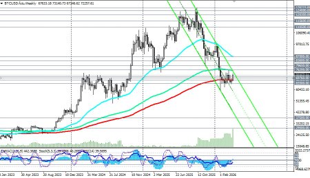 Биткоин остаётся заложником геополитической ситуации и будет колебаться в указанном диапазоне до появления чётких сигналов о долгосрочном мире или возвращении к эскалации. Перемирие (пусть и хрупкое) снизило геополитические риски, а институциональный интерес достиг нового уровня. С другой стороны, индекс «страха и жадности» остаётся на уровне «страха», отметили мы в нашем сегодняшнем фундаментальном анализе и обзоре «Крипторынок (BTC): перемирие против хрупкости». С технической точки зрения, BTC/USD сохраняет краткосрочный бычий импульс, торгуясь выше важных краткосрочных уровней поддержки 69760.00 (ЕМА200 на 1-часовом графике), 69580.00 (ЕМА200 на 4-часовом графике). На дневном графике технические индикаторы также находятся на стороне покупателей: 14-дневный RSI - с растущим значением выше срединной линии 50, OsMA рисует растущие гистограммы, а Стохастик двигается в зоне перекупленности без признаков разворота. При этом цена остается выше 50-дневной ЕМА (70700.00), претендуя на позитивное закрытие недели (с ожидаемым приростом примерно в 6,7%). Следующее сильное сопротивление находится в зоне 76000.00 - 76200.00 (ЕМА144 на недельном графике), которую цене необходимо преодолеть для развития успеха. Риски же падения усилятся в случае пробоя поддержки на уровне 70700.00. Самым ранним сигналом для новых длинных позиций может стать пробой сегодняшнего максимума (он же – максимум недели) 73140.00. Бычий сценарий реализуется при: