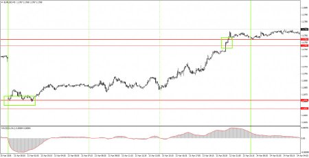 1) Сила сигнала считается по времени, которое потребовалось на формирование сигнала(отскок или преодоление уровня). Чем меньше времени потребовалось, тем сильнее сигнал. 2) Если около какого-либо уровня были открыты две или больше сделки по ложным сигналам, то все последующие сигналы от этого уровня следует игнорировать. 3) Во флэте любая пара может формировать массу ложных сигналов или же не формировать их вовсе. Технические уровни могут игнорироваться. 4) На часовом ТФ по сигналам от индикатора MACD желательно торговать только при наличие хорошей волатильности и тренда, который подтверждается линией тренда или трендовым каналом. 5) Если два уровня расположены слишком близко друг к другу(от 5 до 20 пунктов), то следует рассматривать их, как область поддержки или сопротивления. 6) При прохождении 15 пунктов в верном направлении следует выставить Stop Loss в безубыток.Что на графиках: