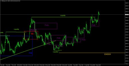 CHOCH – слом трендовой структуры. Liquidity – Ликвидность, Stop Loss трейдеров, которые маркет-мейкеры используют для набора своих позиций. FVG – Область ценовой неэффективности. Цена очень быстро проходит такие области, что указывает на полное отсутствие одной из сторон на рынке. В последствии цена имеет свойство возвращаться и получать реакцию от таких областей. IFVG – Инвертированная область ценовой неэффективности. После возврата к такой области, цена не получает от нее реакцию, а импульсно пробивает, а затем тестирует ее с другой стороны. OB – Ордер-блок. Свеча, на которой маркет-мейкер открывал позицию с целью забора ликвидности для формирования собственной позиции в противоположном направлении. Материал предоставлен компанией InstaForex - www.instaforex.comНовость предоставлена компанией